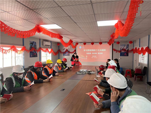 上黨課,添動力。在工地指揮中心,一場學(xué)習(xí)黨的二十大精神活動正在進行。“黨的二十大報告指出,鼓勵勤勞致富,促進機會公平......報告中改善民生的內(nèi)容占很大篇幅,我們一定把黨中央的號召不折不扣落到實處,落實到咱每一位工友的身上。”聽完二十大精神后,順安隆工地陳建峰經(jīng)理說:“王師傅!高空作業(yè)的時候,一定要檢查好自己身上的安全帶系好了沒有?小心無大錯!我們學(xué)習(xí)了黨的二十大報告,也要結(jié)合到我們自身工作中去!”“今天的宣講太接地氣了,讓我們一下子就知道了黨的二十大報告中,針對我們工人這塊的關(guān)懷還是很多的!以后這樣的學(xué)習(xí)還是多搞幾次呢!”意猶未盡的工友朱蘇俊說。