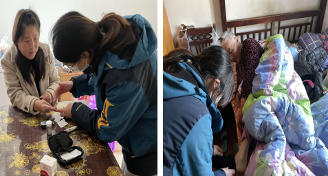 社區(qū)及康復站的工作人員每到一位殘疾人家中都會詳細詢問他們的身體狀況及生活中遇到實際的困難和需求,鼓勵他們堅定信心,戰(zhàn)勝困難。另外叮囑大家特殊時期做好個人防護,減少疾病對身體造成的危害,同時為大家送上春節(jié)慰問品。針對三高群體,康復治療師為大家監(jiān)測血壓,血糖,普及三高預防知識進行日常生活健康宣教,囑咐殘疾人群體養(yǎng)成按時服藥、合理膳食、適當運動的良好習慣。
