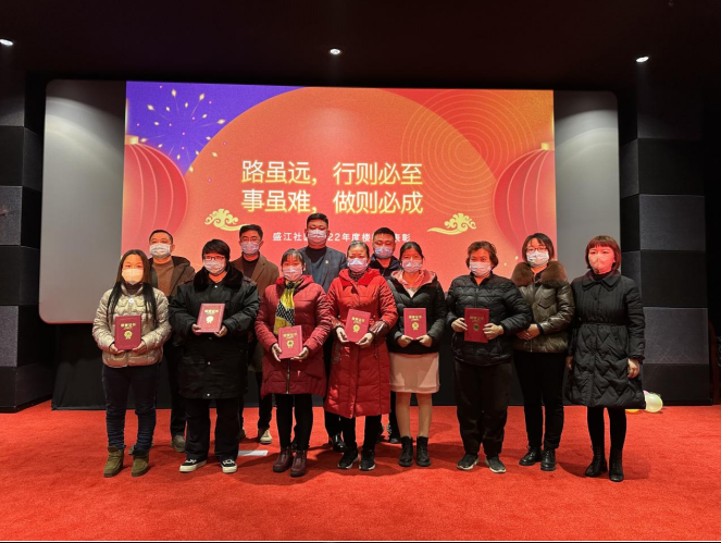 在喜慶歡樂的氛圍中,表彰大會順利拉開帷幕。會上,盛江社區(qū)馬書記對社區(qū)樓棟長一年來的工作進行了充分肯定,著重表揚了樓棟長在社區(qū)總體建設上發(fā)揮的重要作用跟突出貢獻,“今年以來,社區(qū)樓棟長在各自的崗位上繼續(xù)發(fā)光發(fā)熱,在疫情防控、文明典范城市創(chuàng)建以及社區(qū)的和諧穩(wěn)定都做出了不小的貢獻。”馬書記對他們付出的辛勤勞動表示感謝,同時也希望在新的一年,樓棟長們能夠繼續(xù)盡自己所能,配合社區(qū)工作人員做好各項工作。