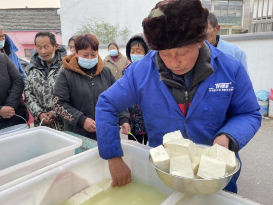 “豆腐代表‘多福’,年糕寓意‘年年高’,希望通過這么一份新春禮包,向村民送去美好的新年祝愿,祝福所有的村民新的一年多福多喜,幸福指數(shù)年年攀升。”牌坊村相關(guān)負責(zé)人介紹到。此外,牌坊村還為村內(nèi)80歲、90歲以上老人每人分別準備了300元、500元新年慰問金,祝福他們福壽安康。
