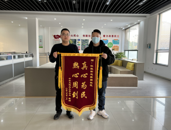 “真情為民 熱心周到” —— 金燦燦的大字在紅彤彤的錦旗上格外引人注目,近日,南京市江寧區(qū)秣陵街道家園社區(qū)云臺天境業(yè)主為社區(qū)送來錦旗,對社區(qū)2022年各項工作給予肯定,對社區(qū)工作人員疫情以來盡職盡責(zé)、心系居民為民的服務(wù)表示感激。