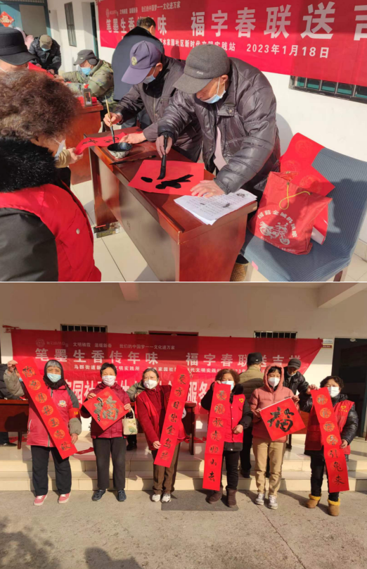 為弘揚中華民族傳統(tǒng)文化,豐富居民的文化生活,營造歡樂祥和的節(jié)日氛圍,2023年1月18日,南京市棲霞區(qū)馬群街道百水家園社區(qū)新時代文明實踐站、社區(qū)關(guān)工委聯(lián)合開展“筆墨生香傳年味 福字春聯(lián)送吉祥” 寫春聯(lián)、送福字的全民閱讀活動。