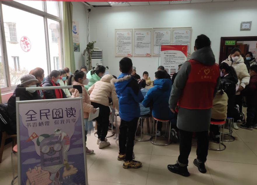 2023年2月2日上午,南京市棲霞區(qū)馬群街道果場社區(qū)關(guān)工委、社區(qū)未成年人保護(hù)服務(wù)站,聯(lián)合社區(qū)三槐長者照護(hù)站點,在社區(qū)綜合文化服務(wù)中心組織“齊益果”積分制志愿者、老年居民、黨員、未成年人一起開展“開卷有益,樂享閱讀”活動。