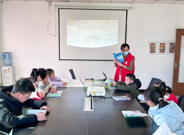 活動(dòng)現(xiàn)場(chǎng),志愿者為在場(chǎng)的小朋友們發(fā)放書籍,有紅色經(jīng)典、趣味故事、報(bào)紙雜志等,號(hào)召大家從現(xiàn)在做起,讀一本好書,寫一次讀書筆記,用心用情感受心靈的浸潤。志愿者帶領(lǐng)小朋友們認(rèn)真閱讀著書籍,不少兒童聯(lián)系生活實(shí)際,向大家主動(dòng)分享著讀完后的感受和體會(huì),現(xiàn)場(chǎng)氣氛十分濃烈。