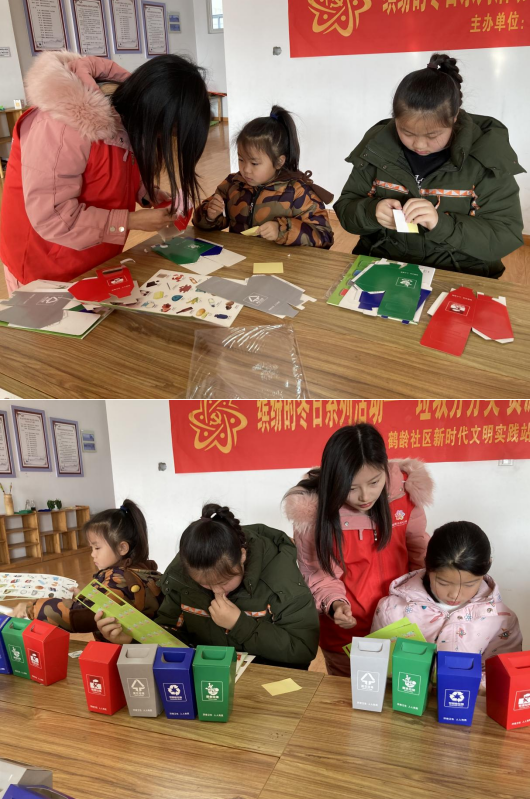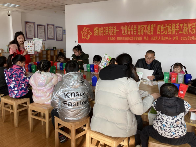 為豐富社區(qū)青少年的假期生活,進(jìn)一步宣傳垃圾分類知識,提高社區(qū)青少年垃圾分類意識,2023年2月6日,南京市江寧區(qū)湯山街道鶴齡社區(qū)新時代文明實踐站組織開展繽紛的冬日系列活動—“垃圾分分類 資源不浪費”四色垃圾桶手工制作活動。