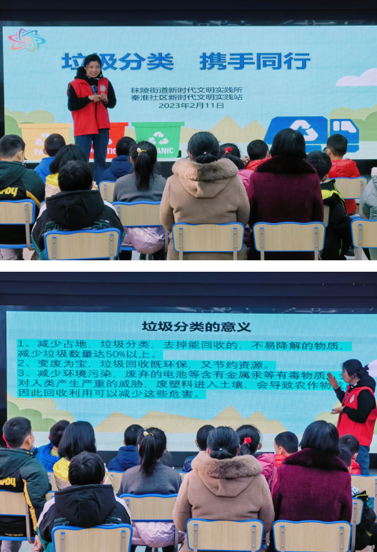 垃圾分類對于垃圾回收再利用、可持續(xù)發(fā)展具有重要意義。為培養(yǎng)社區(qū)青少年垃圾分類的好習(xí)慣,讓垃圾分類“新時(shí)尚”成為全面育人的“新實(shí)踐”。2023年2月11日上午,南京市江寧區(qū)秣陵街道秦淮社區(qū)新時(shí)代文明實(shí)踐站組織志愿者為社區(qū)青少年們開展“垃圾分類 攜手同行”主題活動。