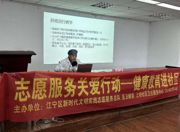更進一步增強居民健康意識、普及健康知識、傳播健康理念,同時加強對新冠患者“陽康”后的宣傳教育,緩解廣大居民的焦慮,減輕心理壓力,2月14日下午14:30,在南京市江寧區(qū)東山街道大里社區(qū)新時代文明實踐站、大里社區(qū)紅十字、科協(xié)聯(lián)合開展“普及醫(yī)療知識 喚醒健康人生”健康促進服務(wù)進社區(qū)活動 ,活動邀請上坊衛(wèi)生服務(wù)中心區(qū)衛(wèi)陳祺主任以肺癌病因及預(yù)防篩查、“新冠病毒‘陽康‘后注意事項”及為主題的健康教育宣傳活動?;顒蝇F(xiàn)場特別邀請了轄區(qū)內(nèi)困難居民、殘疾人、退休老人等50多名居民參加。