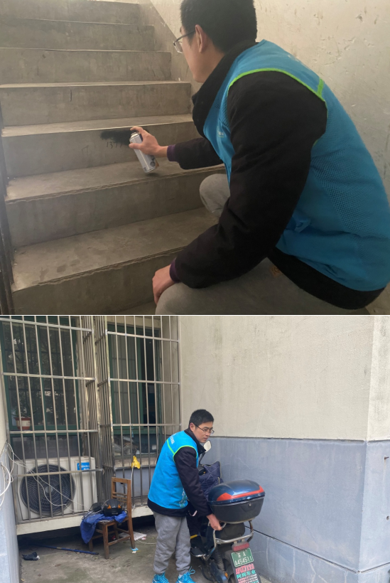 活動(dòng)中,社區(qū)工作人員和志愿者帶著小鏟子、掃帚等工具對(duì)樓道內(nèi)違規(guī)堆放的雜物和張貼的小廣告進(jìn)行了集中清理和整治,新業(yè)態(tài)新就業(yè)群體驛站“小哥”積極加入志愿者行列,身穿藍(lán)馬夾規(guī)范亂停亂放的非機(jī)動(dòng)車(chē),清理亂寫(xiě)亂涂的小廣告,發(fā)現(xiàn)一處,清理一處,努力給居民營(yíng)造干凈整潔的環(huán)境。