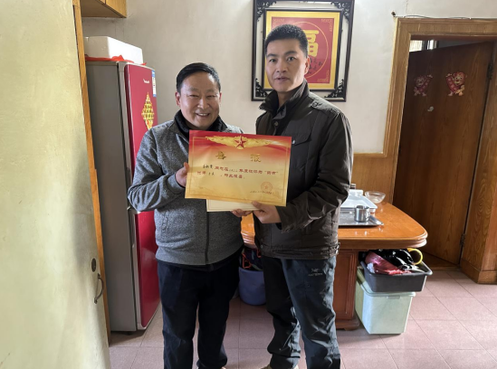 據(jù)悉,此次為李松賢第二次榮獲“四有”優(yōu)秀士兵,他還曾獲2020年度“四有”優(yōu)秀士兵。第二次將喜報送到家屬手中,袁書記仍激動地向家屬表示熱烈地祝賀,感謝他們?yōu)閲?、部隊培養(yǎng)輸送了優(yōu)秀人才,鼓勵他們繼續(xù)關(guān)心支持孩子,讓他們的孩子在部隊安心服役,苦練軍事本領(lǐng),爭取再立新功。“孩子獲得的榮譽離不開部隊的精心培養(yǎng),離不開黨和政府的關(guān)心關(guān)懷,我們一定全力支持孩子為社會、為人民做更多的貢獻。”作為軍屬,李松賢父親的自豪感、榮譽感油然而生。
