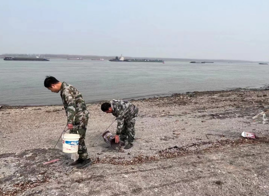 在保護(hù)長(zhǎng)江志愿服務(wù)活動(dòng)中,轄區(qū)退役軍人及居民們來(lái)到江邊,對(duì)岸邊影響到長(zhǎng)江生態(tài)環(huán)境的垃圾進(jìn)行了全面的清理,大家團(tuán)結(jié)一致、集中行動(dòng),一手拿著夾子,一手提著垃圾桶,將丟棄在岸邊的白色垃圾、紙屑、飲料瓶等雜物一一撿起。經(jīng)過(guò)大家一個(gè)小時(shí)的努力,江邊環(huán)境煥然一新。