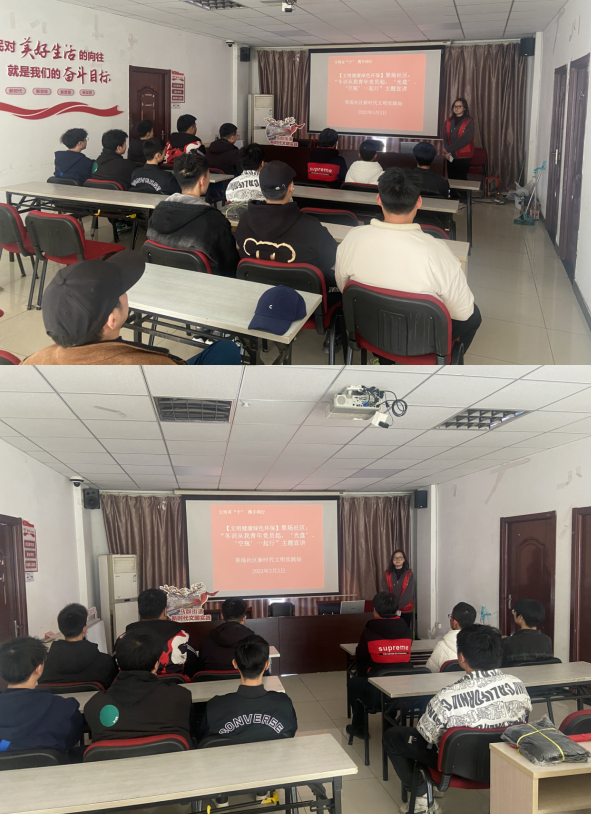 2023年3月3日,南京市棲霞區(qū)馬群街道果場社區(qū)黨總支組織社區(qū)青年黨員在社區(qū)三樓黨員活動室,依托社區(qū)新時代文明實踐站開展“文明有‘寧’ 攜手同行”主題宣講。社區(qū)理論宣講志愿者宣講的標(biāo)題為“冬訓(xùn)從我青年黨員起,‘光盤’、‘空瓶’一起行”。