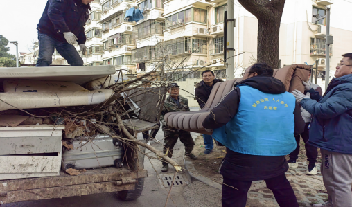南京的春天總是讓人捉摸不定,溫度忽冷忽熱,但是百水家園社區(qū)對上水坊小區(qū)的雜物清理工作可不能和春天的溫度一樣忽冷忽熱,隨著工廠開工,學校開學,上水坊又開始了新一輪的裝修,同樣的沙發(fā),床,床墊,馬桶,柜子,等各種大件雜物分散的堆在了小區(qū)各個地方,嚴重的影響小區(qū)的整體面貌和衛(wèi)生情況,不及時清理雜物只會越來越多,為此百水家園社區(qū)組織了保潔、社區(qū)志愿者、城市治理志愿者,民兵對小區(qū)內(nèi)的雜物又進行了一次大規(guī)模清理。
