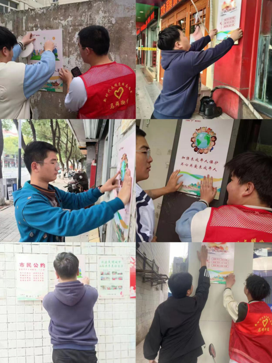 在活動中,大家分工協(xié)作,對馬群新街從南至北進行分段負責,三人一組,對街面及小區(qū)大門的文明宣傳展板進行了更換,清潔墻面,對沿線的環(huán)境衛(wèi)生也進行了清理。