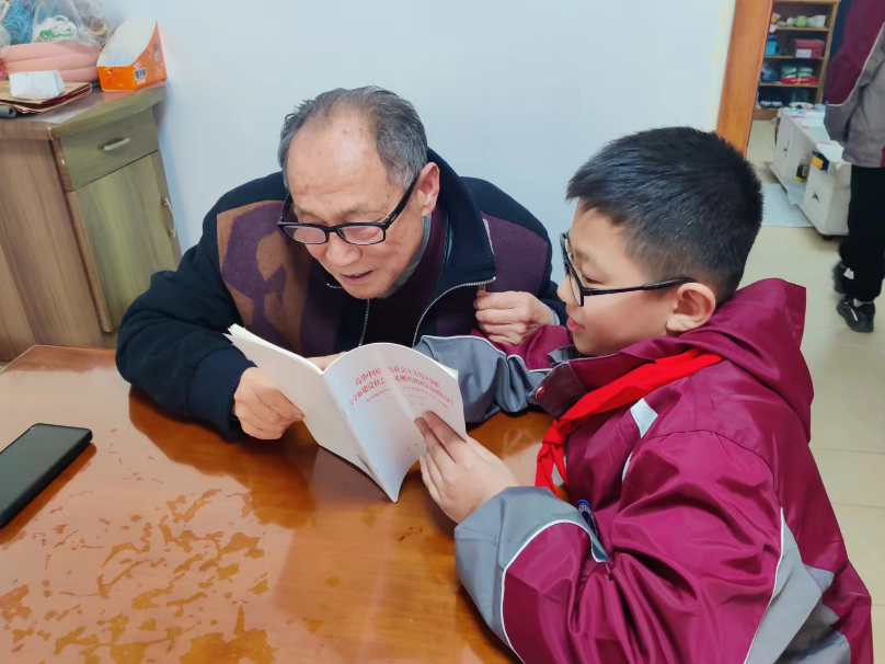 活動過程中,社區(qū)工作人員細心地詢問老黨員的身體、生活情況及精神文化生活狀況,隨后安排南灣營小學的學生將《中國共產黨第二十次全國代表大會上的報告》《黨的二十大學習問答》等學習資料送到老黨員手中,通過誦讀二十大報告的方式,讓老黨員體會到黨的二十大精神真實可感,使之決心要全面學習、全面把握、全面落實黨的二十大精神,與黨員們團結在黨和政府周圍,共同奮斗譜寫新時代新篇章。
