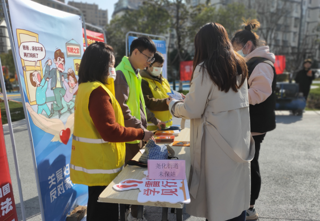 活動現(xiàn)場還有服務(wù)隊的志愿者為各類法律知識宣傳,《未成年人保護法》、《消費者權(quán)益法》、《婦女權(quán)益保障法》、《反電信網(wǎng)絡(luò)詐騙法》,志愿者通過講解宣傳單、展板與居民互動交流,提高社區(qū)居民法律意識,增強居民運用法律保障自己合法權(quán)益的能力。