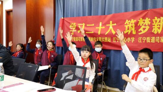 為進(jìn)一步學(xué)習(xí)宣傳貫徹黨的二十大精神,引導(dǎo)少年兒童在黨的奮斗歷史和偉大成就中汲取精神力量、賡續(xù)紅色血脈。近日,南京市江寧區(qū)江寧街道司家社區(qū)開展“學(xué)習(xí)二十大 逐夢新時(shí)代 爭做好少年”紅領(lǐng)巾宣講匯報(bào)會,江寧街道團(tuán)工委副書記朱旭萍、江寧街道關(guān)工委副主任艾云杰、江寧街道婦聯(lián)副主席龔夢園、江寧中心小學(xué)副校長王琴老師、江寧中心小學(xué)德育處副主任汪雪梅老師、大隊(duì)輔導(dǎo)員吳蘇悅老師及司家社區(qū)黨委副書記陳彬彬、黨委副書記魏從剛、居委會副主任卞仕萍共同出席。