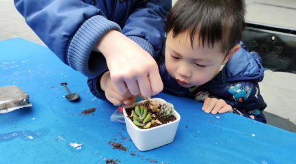 先將泥土倒進(jìn)花盆中,將多肉栽至合理的位置,鋪上一層碎石子,最后插上各式各樣的裝飾品……小朋友們一步步設(shè)計(jì)栽植了屬于自己的多肉小盆栽,并在與家長(zhǎng)們的溝通中不斷完善著自己的作品。小小的一盆多肉,凝聚的是家長(zhǎng)們的關(guān)愛(ài)與孩子們滿(mǎn)滿(mǎn)的創(chuàng)意。多肉盆栽制作完畢后,小朋友們紛紛抱著作品與家長(zhǎng)開(kāi)心地拍照留念。