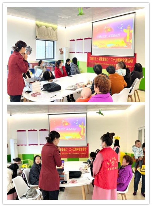 為切實(shí)用好用活社區(qū)宣講陣地,本次活動(dòng)依托楊村社區(qū)婦女兒童活動(dòng)中心,將黨的二十大精神宣講活動(dòng)搬到群眾“家門口”。活動(dòng)伊始,邀請到南京市朗誦協(xié)會(huì)的趙老師進(jìn)行課程講解,趙老師將習(xí)近平總書記“三家”“三者”“三人”相關(guān)論述與黨的二十大報(bào)告中提出的全面增進(jìn)民生福祉、提高人民生活品質(zhì)等內(nèi)容用通俗易懂的語言講述出來,對婦女進(jìn)行思想引領(lǐng),將黨的聲音及時(shí)傳遞給基層?jì)D女群眾。