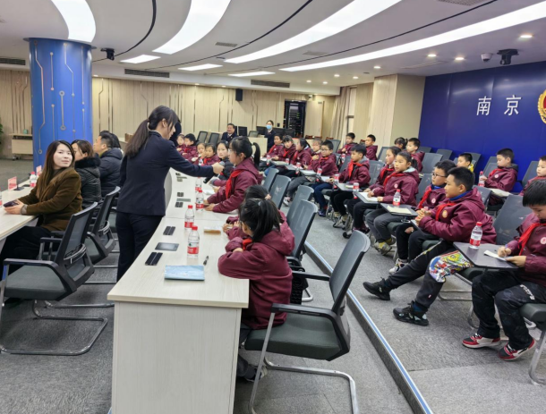 普法課堂結(jié)束后,太陽城小學(xué)的學(xué)生在老師以及普法隊(duì)員的陪同下乘坐青馬社區(qū)安排的大巴前往南京市人民檢察院。孩子們排著整齊的隊(duì)伍,走進(jìn)了莊嚴(yán)肅穆的南京市人民檢察院。此次開放日活動南京市人民檢察院非常重視,檢務(wù)督察處處長呂中、宣傳處副處長宋巍、南京市人民檢察院人民監(jiān)督員斯宇紅全程參與。