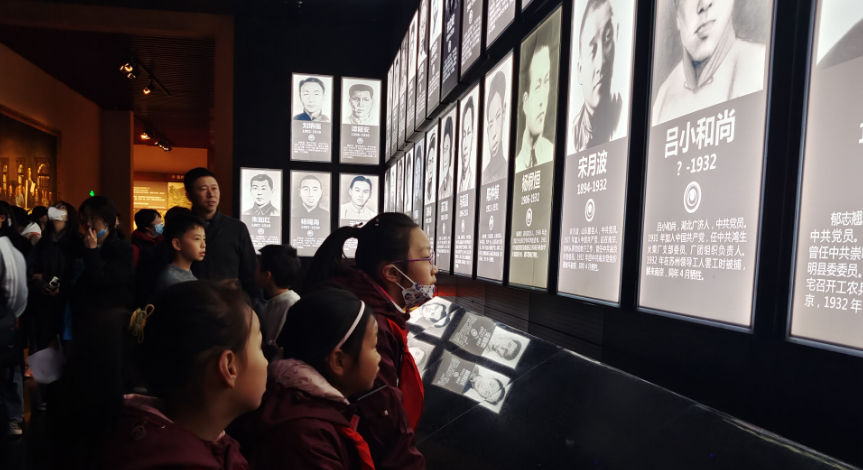 第四站是雨花臺(tái)烈士紀(jì)念館,小朋友們在這里聽了講解員介紹共產(chǎn)黨人的英雄事跡,了解了他們?yōu)榱嗣褡褰夥藕蜕鐣?huì)進(jìn)步所付出的巨大犧牲和不懈努力。