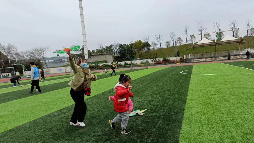 隨后,在太陽城小學(xué)的操場,志愿者們帶領(lǐng)孩子們放飛風(fēng)箏。天空中,五彩繽紛的風(fēng)箏翩翩起舞,如同一幅美麗的畫卷。雖然有些小朋友沒能成功放飛,但也在一次次地嘗試著歡呼雀躍,追逐奔跑,享受著春日的陽光和微風(fēng)。志愿者們也與孩子們互動交流,教他們?nèi)绾慰刂骑L(fēng)箏的高度和方向,講述風(fēng)箏的歷史和文化,增進(jìn)了他們對傳統(tǒng)手工藝的了解和喜愛。