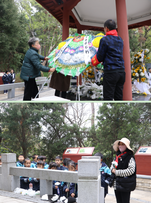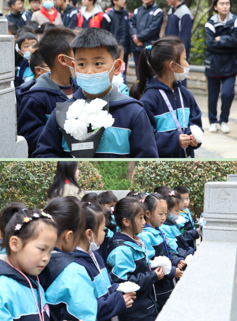 活動(dòng)現(xiàn)場,莊嚴(yán)肅穆,全體成員在烈士墓碑面前向烈士默哀,實(shí)小副校長陳勇、德育處厲登高進(jìn)行總結(jié)。隨后,在相關(guān)工作人員的帶領(lǐng)下,學(xué)生們向烈士敬獻(xiàn)花圈,整理挽聯(lián),向烈士三鞠躬,并繞陵墓一周,敬獻(xiàn)小白花。每個(gè)人都滿懷著對(duì)烈士的敬意和哀思,也表達(dá)著對(duì)烈士們“拋頭顱、灑熱血”愛國精神的崇高敬仰。