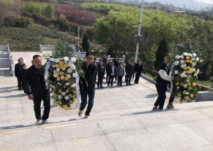 默哀畢,全體人員獻(xiàn)上手中的菊花,緩步繞行、瞻仰紀(jì)念碑一周,向革命烈士致敬。最后,大家一起敬讀烈士墓墻壁上的光輝事跡。