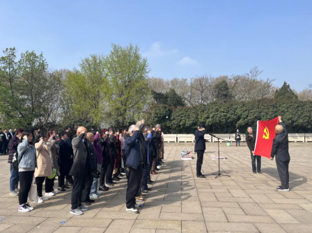 上午在雨花臺(tái)烈士紀(jì)念碑前舉行了莊嚴(yán)肅穆的祭奠儀式。蛇盤社區(qū)黨總支書記陳浩代表全體參與人員向烈士敬獻(xiàn)花圈,為死難烈士默哀,并帶領(lǐng)全體黨員重溫入黨誓詞。以鏗鏘有力的誓言,表達(dá)不負(fù)革命先輩遺志的堅(jiān)定信念。最后,大家環(huán)繞烈士紀(jì)念碑緩緩步行一圈,以表達(dá)對(duì)先烈們的深切哀悼和崇敬之情。