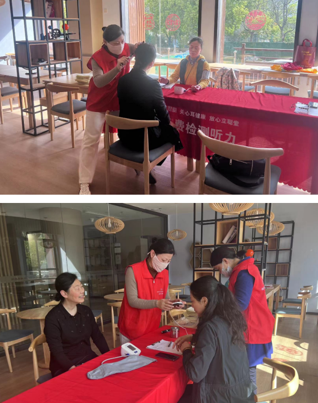 活動現(xiàn)場志愿者耐心地詢問:“老人家,你耳朵聽不清多長時間了,耳朵叫(耳鳴)嗎,像什么聲音?”“你有耳痛及流膿嗎,多長時間了?”現(xiàn)場氣氛異常熱烈,社區(qū)居民也頻頻提問,志愿者逐個解答提出的問題。并對日常生活中錯誤的用耳習(xí)慣進行糾正,傳遞正確的護耳知識。此外,志愿者還為他們發(fā)放宣傳資料200余份、查耳聾疾病、耳朵清理、測量血壓,指導(dǎo)助聽器、人工耳蝸等輔具的正確使用。