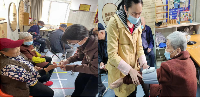 活動(dòng)開始前,參與活動(dòng)的殘疾人和老年人來到康復(fù)站進(jìn)行血壓血糖測(cè)量。根據(jù)服務(wù)對(duì)象的測(cè)量結(jié)果,康復(fù)站工作人員提出積極鍛煉、規(guī)范用藥、合理飲食、健康作息等方面的建議,并對(duì)大家提出的康復(fù)問題進(jìn)行仔細(xì)解答指導(dǎo)。