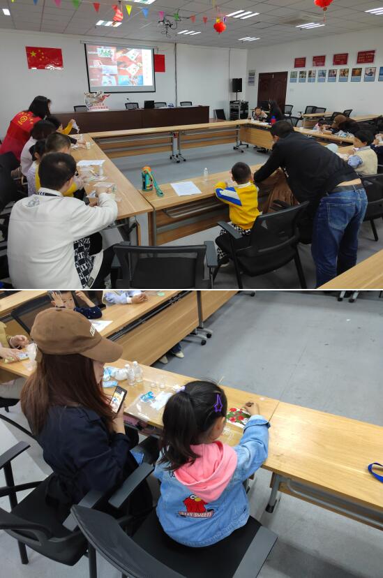 之后在志愿者的帶領(lǐng)下,小朋友們開(kāi)心地制作壓花杯墊。家長(zhǎng)先將A、B膠按1:1比例混合后倒入模具,然后小朋友用鑷子輕輕地把干花材料擺放進(jìn)去。在等待凝膠風(fēng)干的過(guò)程中,大家繼續(xù)制作壓花書(shū)簽。擺花、打孔、穿流蘇。精美的壓花書(shū)簽和杯墊相繼制作完成了,小朋友臉上成就滿滿,露出燦爛的笑容,手拿作品進(jìn)行合照。