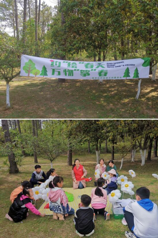 4月15日,南京市江寧區(qū)淳化街道茶崗村新時(shí)代文明實(shí)踐站聯(lián)合紅葉社工,在茶崗村凱進(jìn)園林開展“約‘繪’春天 萬物‘箏’春”戶外主題活動(dòng),帶孩子們走進(jìn)自然,尋找春天。