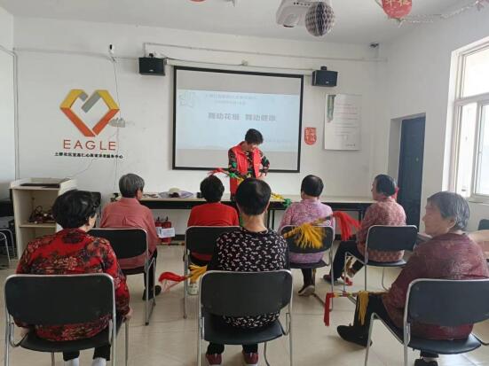 參加活動的老人們相互學(xué)習(xí)相互合作,從《十里紅軍》到《手扶欄桿》,奶奶們都能跟著音樂節(jié)拍打著花棍舞動自己。