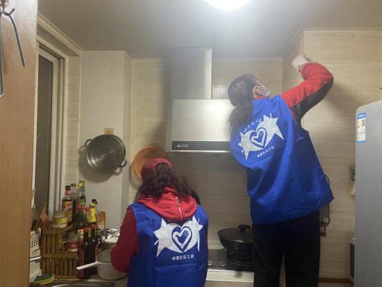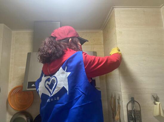 獨(dú)居老人董爺爺身患?xì)埣?,行?dòng)不便,家里處處布滿(mǎn)灰層,廚房更是雜亂無(wú)章,他的心愿就是擁有一個(gè)清潔干凈的家。蛇盤(pán)社區(qū)聯(lián)合工會(huì)的兩位志愿者阿姨用近3個(gè)小時(shí)幫董爺爺把家里打掃的干干凈凈。老人看到家中煥然一新,為她們豎起大拇指。
