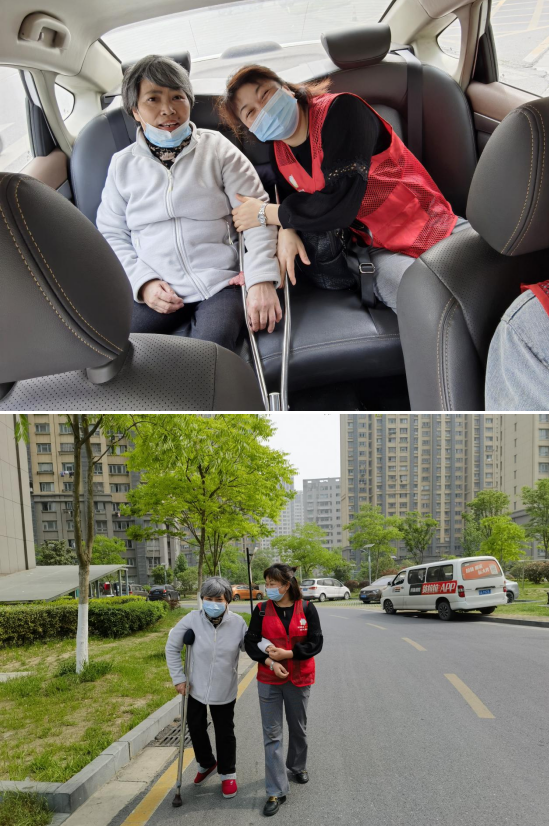夏其花先預(yù)約了網(wǎng)約車(chē),然后攙扶著朱鳳珠走出小區(qū),協(xié)助她坐上車(chē)前往醫(yī)院。一路上和朱鳳珠聊聊家常,逗得她喜笑顏開(kāi)。到了醫(yī)院后給朱鳳珠租借了輪椅,再推著她奔走在各個(gè)科室之間,幫助她完成體檢。經(jīng)歷了1小時(shí)左右的體檢,夏其花再次打車(chē)送朱鳳珠安全回家,這次的上門(mén)服務(wù)就完成了。