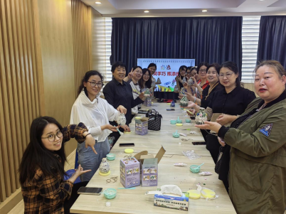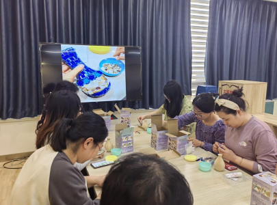 “我覺得這兩種綠色搭配起來有種春天的感覺,很好看。”在制作過程,大家發(fā)揮自己的創(chuàng)造力和想象力,并時不時地相互交流,相互討論,最后將各種材料通過貼、刷、擦等動作把馬賽克貼片塑造成一個個創(chuàng)意滿滿的花瓶,整個活動現(xiàn)場充滿了歡樂的氣氛。