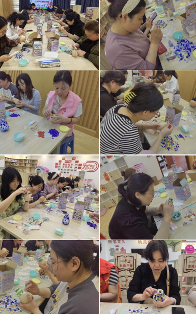 完成作品后,大家紛紛感嘆:“原來小小的馬賽克可以做出那么好看的花瓶。”看著自己的創(chuàng)意和成果,她們臉上都露出了快樂的笑容。