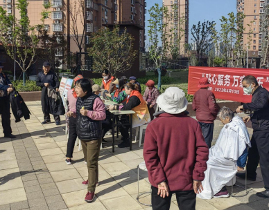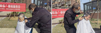 理發(fā)師認(rèn)真又耐心地根據(jù)每位居民的頭型特點(diǎn),精心為他們修剪頭發(fā);