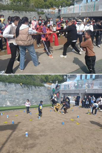 隨著激昂的運動員進行曲,親子運動會正式拉開了帷幕。此次運動會包含拔河、抬抬樂、運球等比賽,所有比賽都需要家長和孩子共同來完成。寶貝們火力全開,家長們積極參與,在游戲比賽中你追我趕,默契配合。操場上不斷傳出一聲聲加油,展露著一張張燦爛的笑臉,成為了春日校園里最美的風景線。