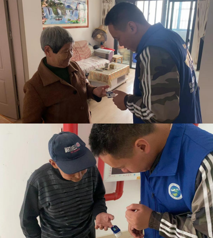 “張奶奶,您最近身體怎么樣啊?有沒有感覺到哪里不舒服?這個是血氧儀,我用它夾在你的手指上,給您測一下你的血氧狀況,血氧保持在95-100都是正常的,不要擔(dān)心,有什么事情及時和我們聯(lián)系。”網(wǎng)格員挨家挨戶上門給社區(qū)老人進行血氧測量,幫助老人們了解自身健康狀況,并且耐心叮囑老人平時要注意飲食健康,注意換季增減衣服,如果身體不適要第一時間聯(lián)系網(wǎng)格員。