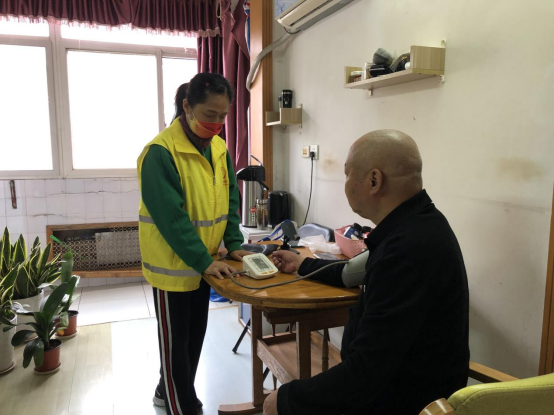 在老人家中,時間銀行志愿者耐心為老人測量血壓,與老人嘮家常,十分關心老人的生活狀況和身體情況,叮囑老人要改變不良的生活習慣,多鍛煉,發(fā)現(xiàn)頭暈、頭痛等問題要及時就醫(yī)。“大爺,您的血壓有點高,飲食上要注意不要吃太咸,少吃肥肉多吃蔬菜。”志愿者的暖心叮囑也讓老人十分感動,“志愿者總是特別關心我們這些獨居老人,時不時就過來看下我們的情況,有他們在,我放心多了!”老人高興地表示。
