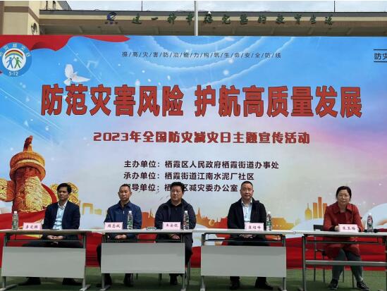 為引導居民牢固樹立風險意識和底線思維,著力提高群眾災害風險防范應對能力,營造濃厚的社區(qū)安全氛圍,2023年5月10日上午,由南京市棲霞區(qū)棲霞街道主辦、江南廠社區(qū)承辦、區(qū)應急管理局減災委辦公室指導的“防范災害風險、護航高質量發(fā)展”2023防災減災日主題宣傳及演練活動在棲霞街道成功舉辦。