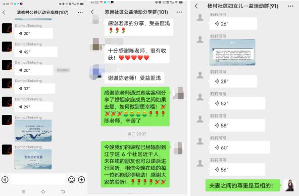 為了普及更多的新婚家庭知識,本次微課堂內(nèi)容也輻射進入了6個社區(qū)的人群,讓更多的家庭學習了相關知識。后期中心將陸續(xù)推出愛之聲婚姻課堂,不僅使新婚家庭和新組建家庭深刻認識婚姻家庭真諦,明白婚姻不僅僅有浪漫和甜蜜,更是一份責任和擔當,還進一步掌握健康的婚姻知識,教育引導廣大群眾增強法治意識,建立平等、和睦、文明的婚姻家庭關系,把家庭經(jīng)營得更加幸福,以家庭和諧促進社會穩(wěn)定。
