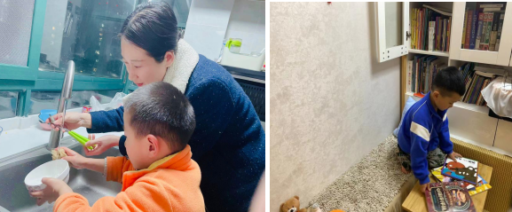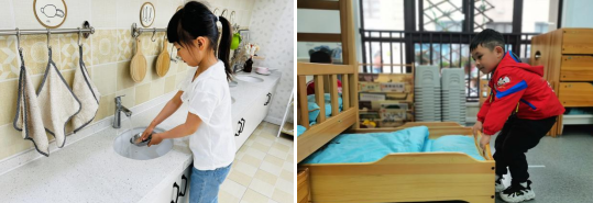 在家中,孩子們化身爸爸媽媽的小幫手,掃地、拖地、收拾餐具、洗菜、擦桌子、洗自己的小襪子、和媽媽一起做飯、照顧植物、整理書本......家庭是實施勞動教育的重要場所,鼓勵孩子們多多參與家務(wù)勞動,給予他們適量的表揚,不僅能提升孩子們自身的技能,也能進一步拉近親子之間的關(guān)系。