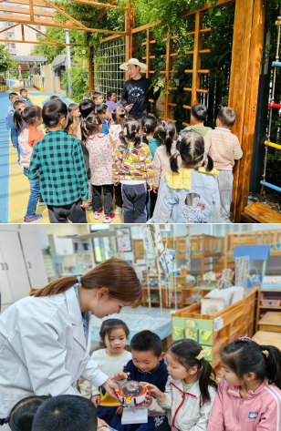 幼兒園還邀請了園林工人在給小朋友介紹植物的養(yǎng)護方法;醫(yī)生媽媽引導(dǎo)著孩子們了解保護眼睛的知識;工人爺爺帶著工具箱給寶貝們介紹著不同工具的用途,還有有趣的陶泥制作手工活動等。這些活動蘊含了豐富的教育內(nèi)涵,不僅讓孩子們增長了知識,拓展了視野,還讓他們了解原來勞動榜樣就在身邊,秉承“勞動最光榮”的傳統(tǒng)美德。