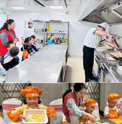 同時,幼兒園還帶領(lǐng)孩子們來到了小廚娘餐廳進行參觀學(xué)習(xí),孩子們在糕點師傅的指導(dǎo)下自己動手制作了美味的綠豆糕,感受到制作美食的快樂,同時也親身體會廚師工作的辛苦,懂得了珍惜食物,并享受著品嘗勞動成果的幸福!