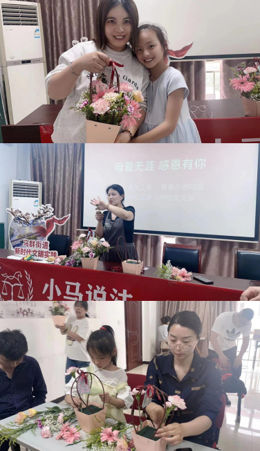 在母親節(jié)即將到來之際,為傳承中華民族傳統(tǒng)美德,豐富轄區(qū)居民的文化生活,5月13日上午,南京市棲霞區(qū)馬群街道關工委、青春志愿同盟、青馬社區(qū)關工委開展“母愛無涯 感恩有你”母親節(jié)主題親子插花活動,借此活動向轄區(qū)的媽媽們送上母親節(jié)的節(jié)日祝福。