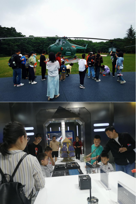 走入校園,向?qū)ьI(lǐng)親子家庭們乘車游覽校園,領(lǐng)略名校的鐘靈毓秀。登上南航一號(hào)教學(xué)樓22層俯瞰整個(gè)校園,美景盡收眼底。“御風(fēng)園”集中展示了我國(guó)航空航天事業(yè)的發(fā)展成就,是南航航空航天教育教學(xué)實(shí)踐基地用于大型實(shí)物現(xiàn)場(chǎng)教學(xué),碧綠的草坪上擺放了多種型號(hào)的直升機(jī)、戰(zhàn)斗機(jī)、運(yùn)輸機(jī)、無(wú)人機(jī),孩子們興致勃勃,仔細(xì)觀察、認(rèn)真聽(tīng)講、不時(shí)提問(wèn)。向?qū)н€帶領(lǐng)大家參觀了航天館,為大家講解中國(guó)航天發(fā)展史,孩子們看到各種航天模型、空間站模擬艙,紛紛躍躍欲試,想要親身感受祖國(guó)航天科技的發(fā)展與進(jìn)步。