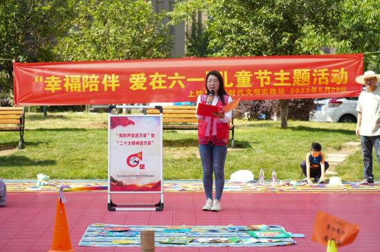 上坊新城小區(qū)活動(dòng)現(xiàn)場(chǎng),社區(qū)理論宣講員組織孩子們開(kāi)展《學(xué)習(xí)黨的二十大精神 爭(zhēng)做新時(shí)代好少年》主題宣講,接著志愿者帶領(lǐng)孩子們開(kāi)展互動(dòng)節(jié)目游戲,包含小丑互動(dòng)表演、愛(ài)的魔力套圈圈、“愛(ài)要?jiǎng)悠饋?lái)”親子體驗(yàn)活動(dòng)、童趣集市等。一系列豐富多彩的活動(dòng)為孩子們送上節(jié)日的祝福,也將愛(ài)國(guó)主義的種子播撒進(jìn)他們幼小的心靈。