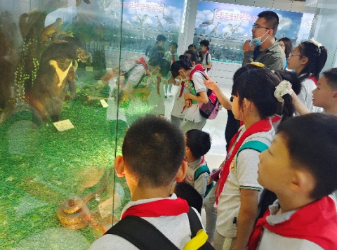 下一站進(jìn)入了動(dòng)物標(biāo)本館。門一打開(kāi),眼前的景象便讓小朋友們驚奇不已。館內(nèi)陳列著各類珍禽以及多種水陸動(dòng)物的標(biāo)本。自由參觀過(guò)后,小朋友們?cè)谥v解員的帶領(lǐng)下分區(qū)域依次更為仔細(xì)地觀賞了動(dòng)物標(biāo)本,了解了動(dòng)物的種類,明白了生物多樣性對(duì)動(dòng)物生存的影響,也通過(guò)見(jiàn)識(shí)各種動(dòng)物加深了對(duì)生物多樣性的認(rèn)識(shí)。